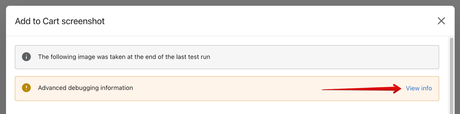 If the reason for the failure is still unclear, you can click view info on the advanced debugging information notice for technical insights.